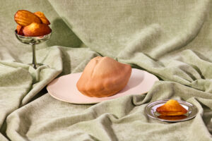 Cette pâtisserie est une madeleine trompe-l’oeil, en référence à Madeleine Enescot, derrière laquelle se cache un entremets délicat : biscuit madeleine, crème vanille, confit vanille-grenade-hibiscus, croustillant amande et glaçage dulce. Une pâtisserie qui allie création culinaire et émotion sensorielle. Elle a été dévoilée lors de notre soirée caritative Octobre Rose, organisée en soutien à l’Institut Rafaël centre de santé intégrative à l’Hôtel le Marois le 30 septembre dernier. Les bénéfices sur la vente de l’égérie leur seront reversés.
